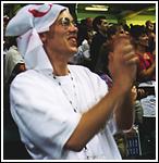 Also, the ball is smaller and harder than a soccer ball. Each team has six players and a goalie on the court. Only the goalie is allowed inside a special semi-circular line that is painted six meters from the goal. Players cannot take shots from inside the line unless they take off outside of the line and release the ball before landing inside it. This means hard-throwing goalmongers are constantly flying through the air and blitzing the goal with that hard, nasty ball. To help take some of the sting out of the ball, the goalies wear sweatsuits. But they still take an awful pounding when blocking shots. Team handball is popular in many parts of the world. It was a crowd favorite at the Olympics. The world's top teams definitely didn't disappoint anyone in Atlanta. Spain edged France, 27-25, in the bronze medal game. In the gold medal game, Croatia upset Sweden, 27-26. These super-close, super-exciting games had crowds in the Georgia Dome waving flags and yelling like maniacs. The Croatian fans went craziest of all as their team captured Croatia's first Olympic gold medal. © Sports Illustrated, Photo credits: Top and middle photos © Nik Kleinberg; "Crazy Fan" photo © Dan Petroski |
