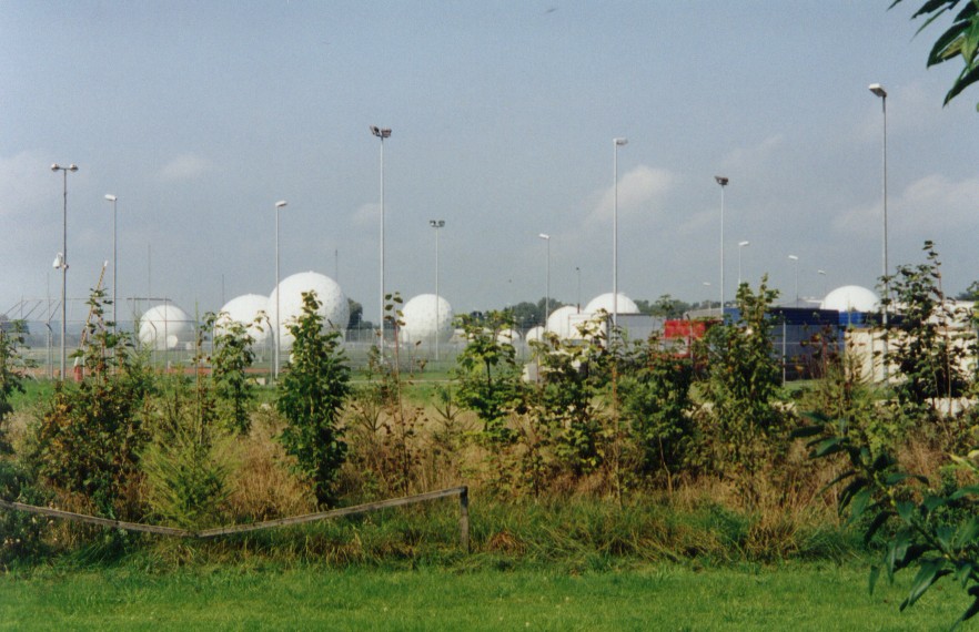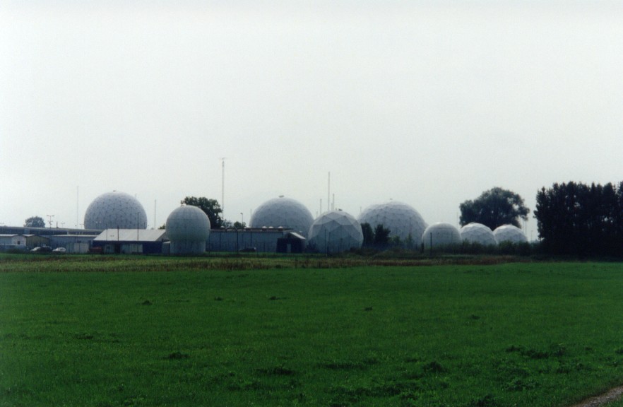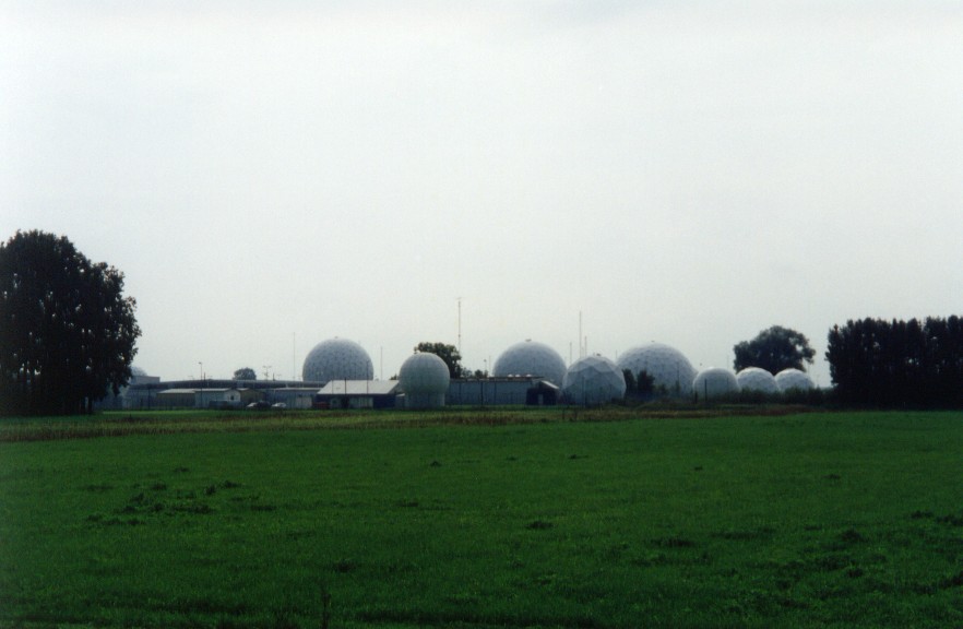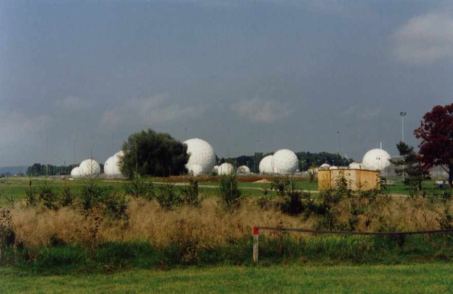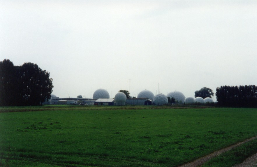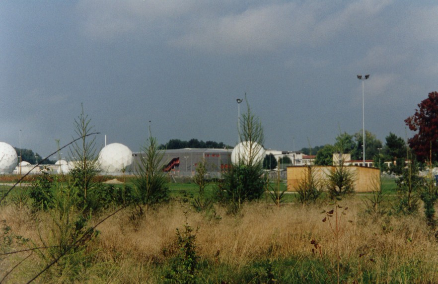 There are very few photos of the Bad Aibling RSOC around, only one or two rather old, grainy illustrations which presumably came from newspaper articles. When I was in the area in the summer of 2000 I took the opportunity to wander round and take a few photos, which I've posted below as scanned. These were taken with a borrowed camera and a fixed 50mm lens, so don't expect too much (I'm a cryptographer, not a photographer). Note that this page can take awhile to load because of the number and size of the images.