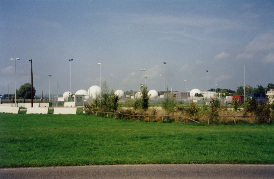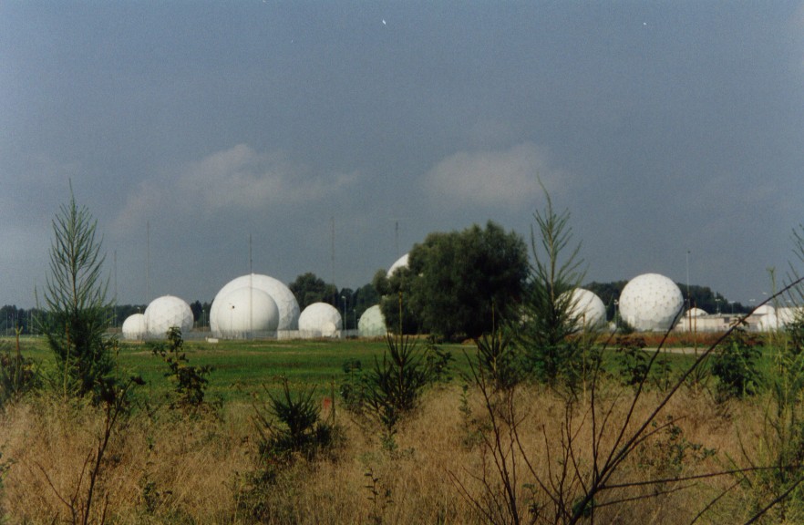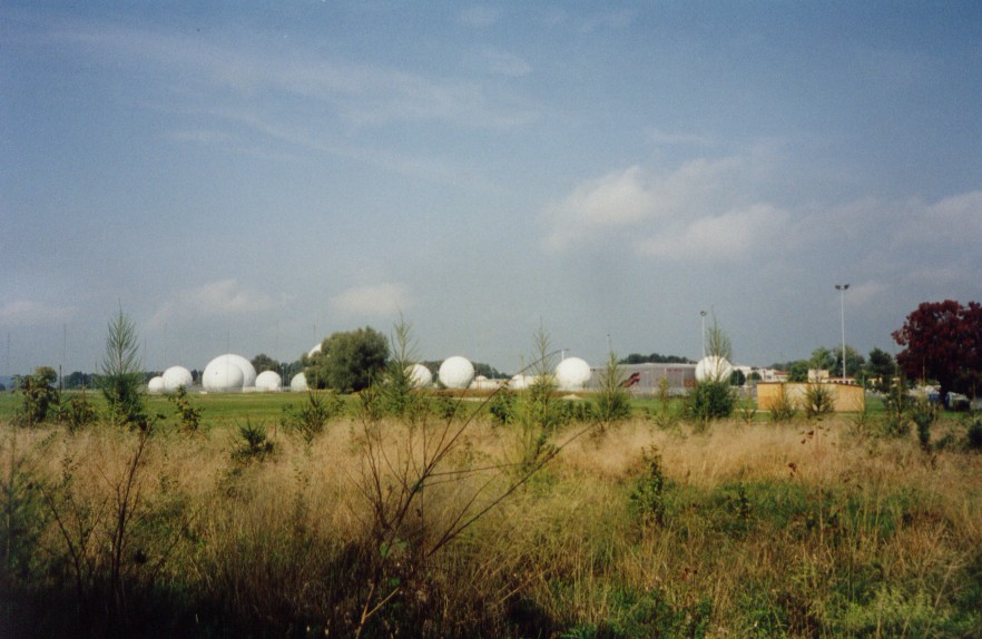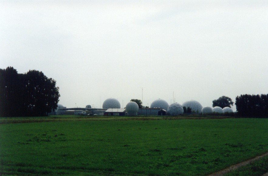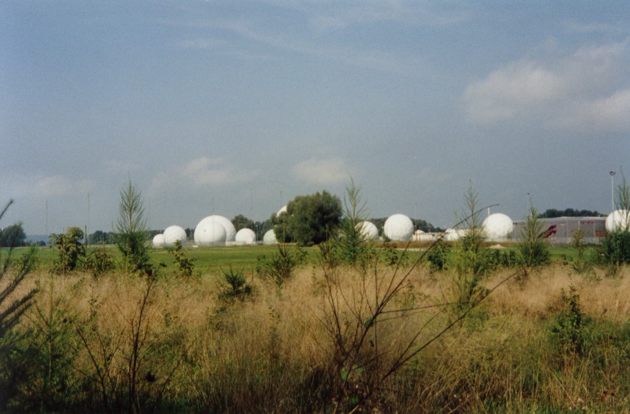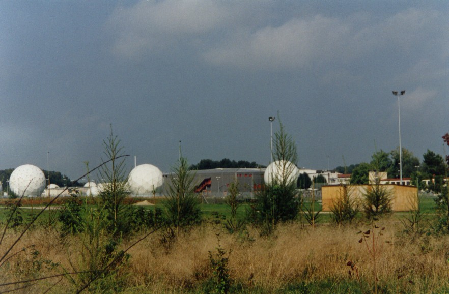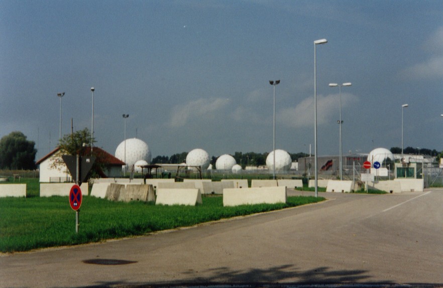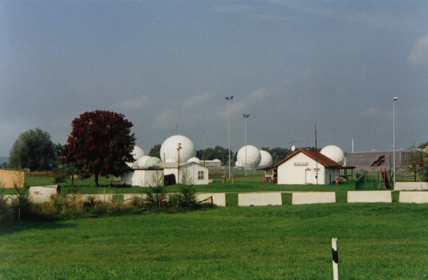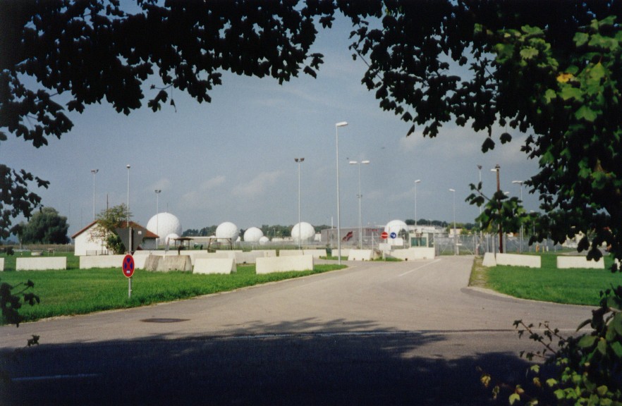 There are very few photos of the Bad Aibling RSOC around, only one or two rather old, grainy illustrations which presumably came from newspaper articles. When I was in the area in the summer of 2000 I took the opportunity to wander round and take a few photos, which I've posted below as scanned. These were taken with a borrowed camera and a fixed 50mm lens, so don't expect too much (I'm a cryptographer, not a photographer). Note that this page can take awhile to load because of the number and size of the images.