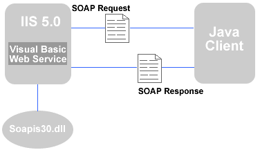 - The Visual Basic Web Service is deployed on IIS 5.0 on a Windows 2000 machine.