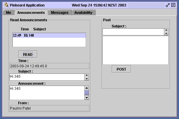 Pin Board Application Help - 'Announcements' TabBy clicking on the ‘announcements’ tab, you see the following screen: