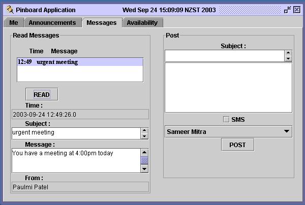 Pin Board Application Help - 'Messages' TabWhen you click on the ‘messages’ tab, the following screen will be displayed:
