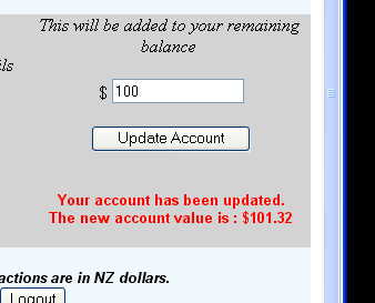 To increase your balance, enter the amount that you would like it to increase by, and press the ‘update account’ button.