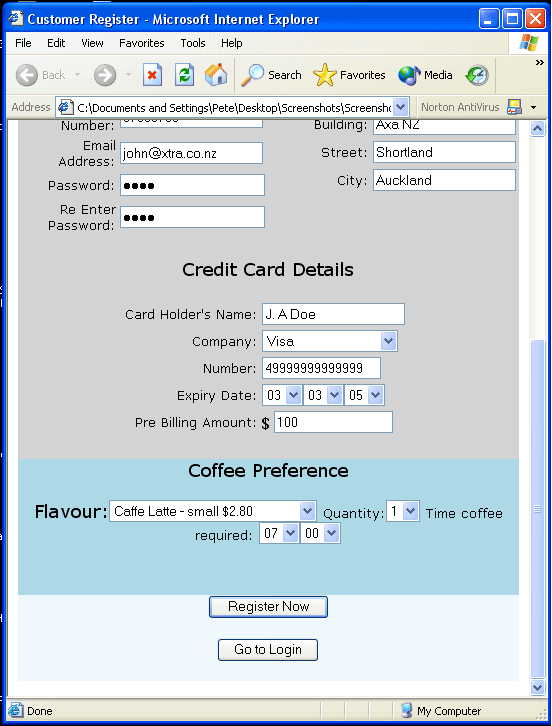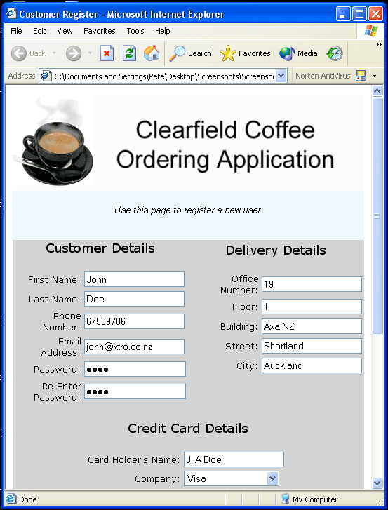 Using this screen you can change any of your personal details, delivery details, password or coffee preferences. This is an extremely useful screen if you want to make the usage of the coffee application as quick and easy as possible.
