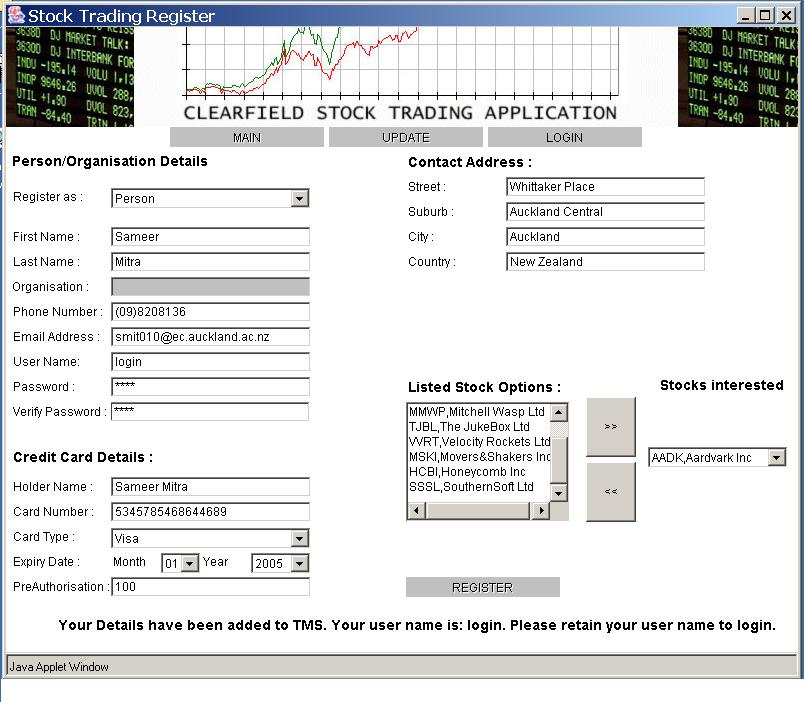 Stock Trading Application Help - Getting StartedWhen the application is first loaded, you will be shown a screen which looks something like the screen below.