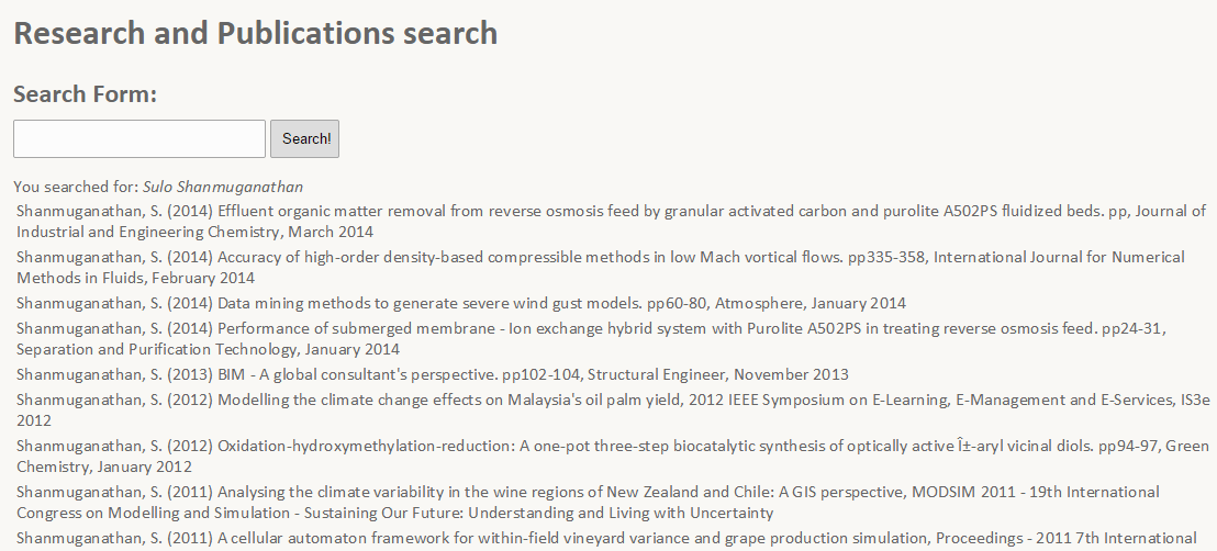 Screenshot from the publication search. Uses the Scopus API to find an author by their last name, and initials of the first name