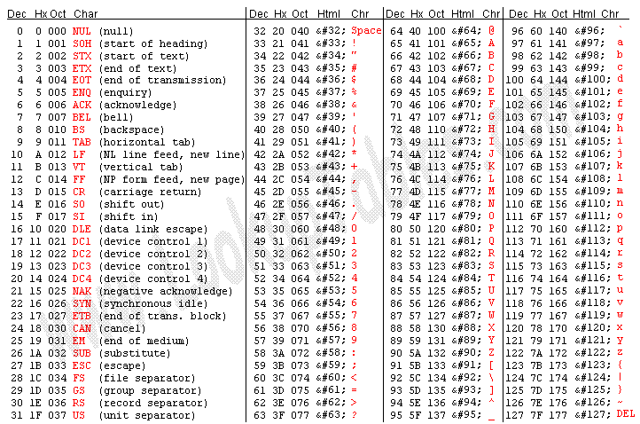 Ascii table