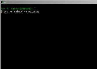 Clicking on the “cygwin” icon placed upon your desktop gets you to a “bash” shell (see below) with the current working directory of C:\cygwin\home\<username>. Assuming you have placed a C program in this directory in a file called “main.c” you can use gcc as shown below (you can create “main.c” using “notepad.exe” which ensures it is a pure text file—wordpad.exe may save your code in “rich text” which gcc will not understand).