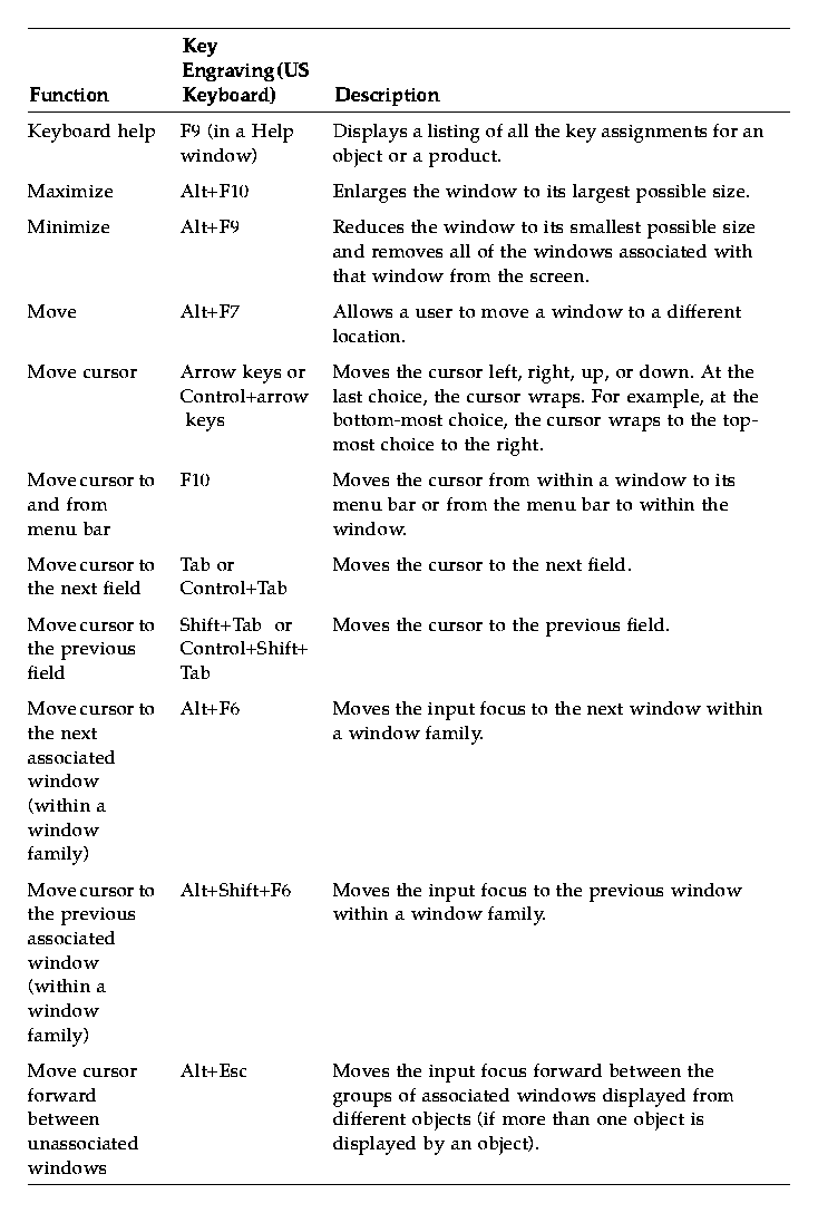 Table A-2 Mnemonic Assignments for menu Choices (continued)