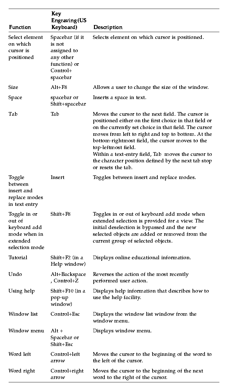 Table A-1 Keyboard Functions and Key Engraving (continued)