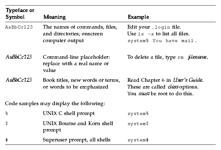 The following table describes the type changes and symbols used in this book.