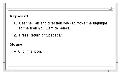 * Use the Tab and direction keys to move the highlight to the icon