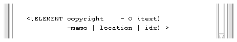 <!ELEMENT copyright - O (text)