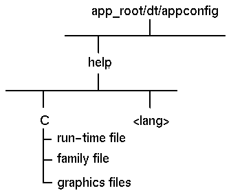 Figure 13-1 shows a typical installation package for an application and its help files. Help files are grouped in a separate help subdirectory which contains a default language directory (C is the default). The run-time help file, family file, and graphics files are located in this directory.