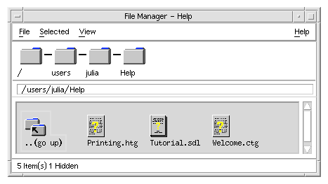 The details of running HelpTag are covered in "To Create a Run-Time Help Volume.".ctg and.htg extensions) and one run-time file (.sdl extension). If you double-click a markup file, your standard editor opens the file for editing. Double-clicking a .sdl file displays the run-time file using the Help Viewer.Figure 2-2 File Manager view of help files