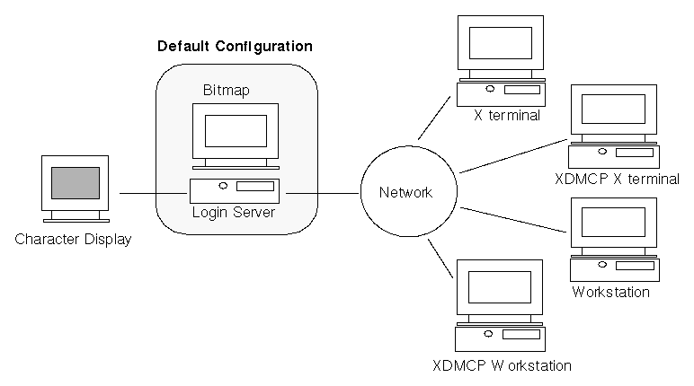 Displays managed by the Login Manager can be directly attached to the Login Manager server or attached to an X terminal or workstation on the network. For local displays, the login server will automatically start an X server and display a login screen. For network displays, such as X terminals, the login server supports the X Display Manager Protocol (XDMCP) 1.0, which allows displays to request that the login server display a login screen on the display.