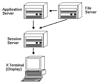 Figure 5-3 X terminals get session services from a session server