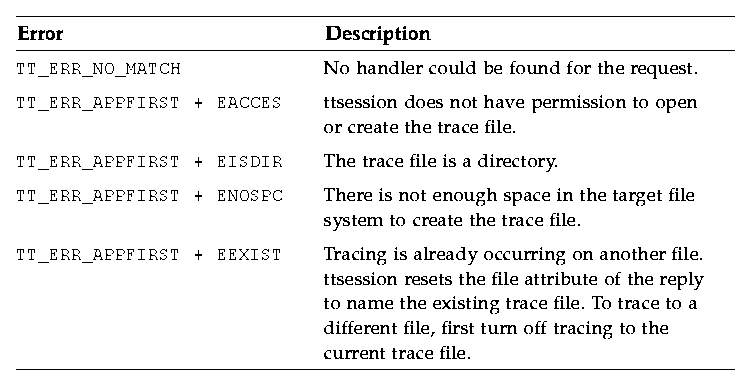The current session tracing behavior changes only if this request is not failed. On failure, the tt_message_status of the reply is set to one of the errors described in Table 4-2.