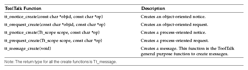 ToolTalk messages are simple structures that contain attributes for address, subject (such as operation and arguments), and delivery information (such as class and scope.) Each message contains attributes fromTable 8-1.