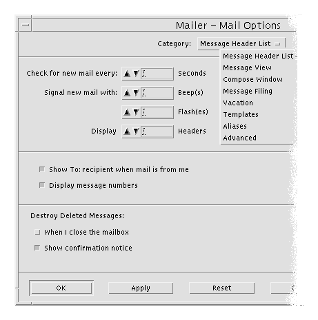 - Choose Compose Window from the Category menu of the Mail Options dialog box.