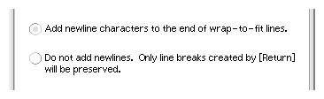 If you used Wrap To Fit, the dialog box includes an additional choice about handling line endings. If Wrap To Fit is set off, the dialog box omits this choice (see "Using Wrap To Fit").
