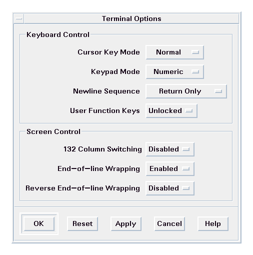 - If the Terminal Options dialog box is not displayed, choose Terminal from the Options menu.