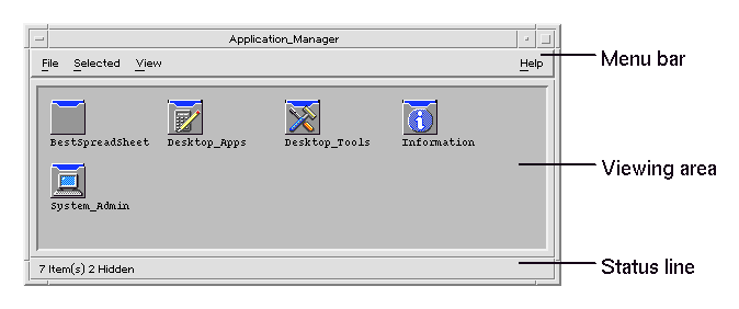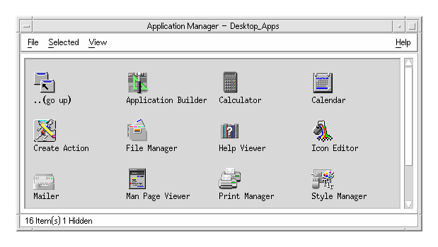 Application Manager is a container for the applications and other tools available on your system. Most of the applications and tools in Application Manager were placed there by your system administrator or are built into the desktop.